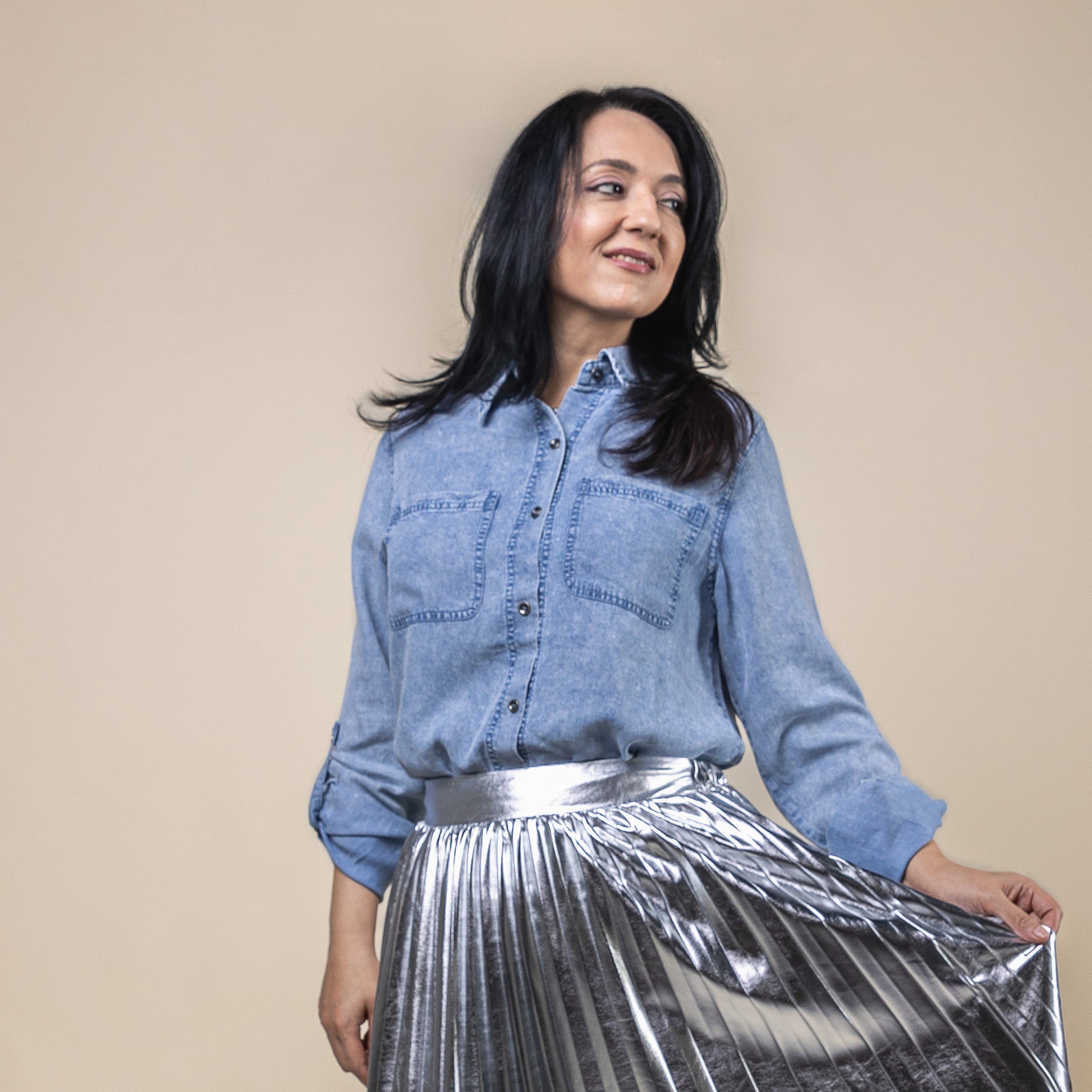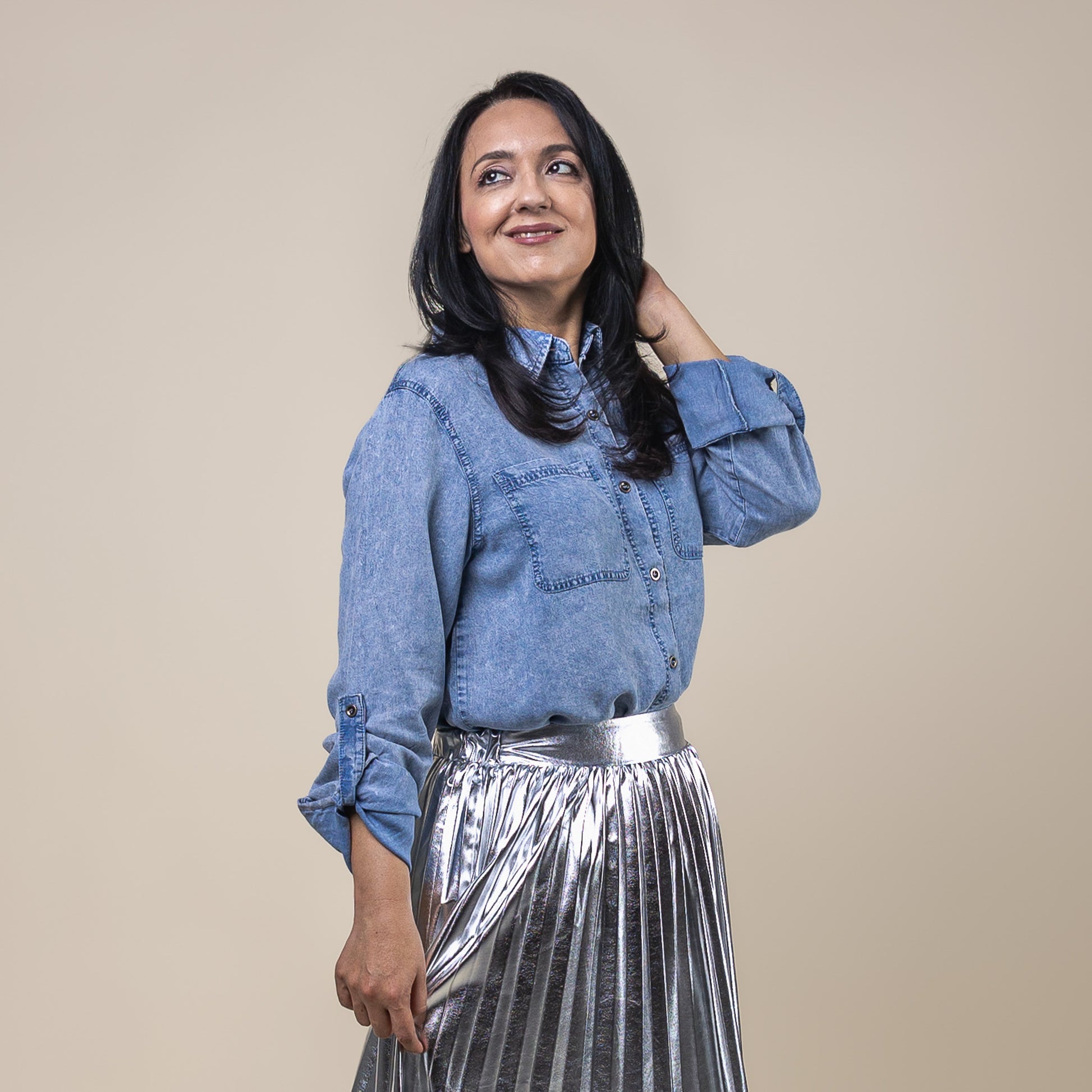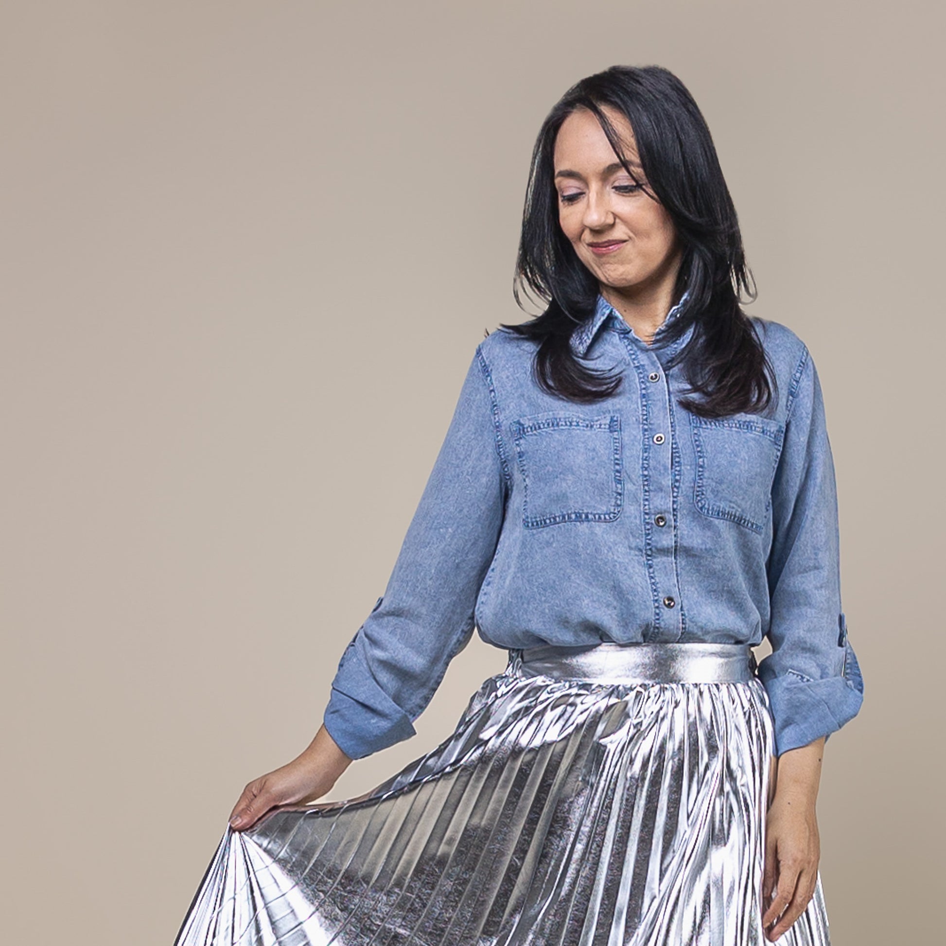 A classic collared button down shirt with roll tab sleeves giving you the option wear long sleeves or fold them up. Made of soft Tencel and much more comfortable than your average denim shirt. The longer length gives you options to wear it along or as a layering piece.